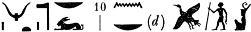 - Sauneron 1962, p. 201, translated this phrase without comment as: “et pour toute le durée de l’éternité.” Presumably the bull writes k < kȝ, and the seated man could write m < nn. One might compare the unusual alphabetic writings noted in Sauneron 1959, p. 47.↩︎